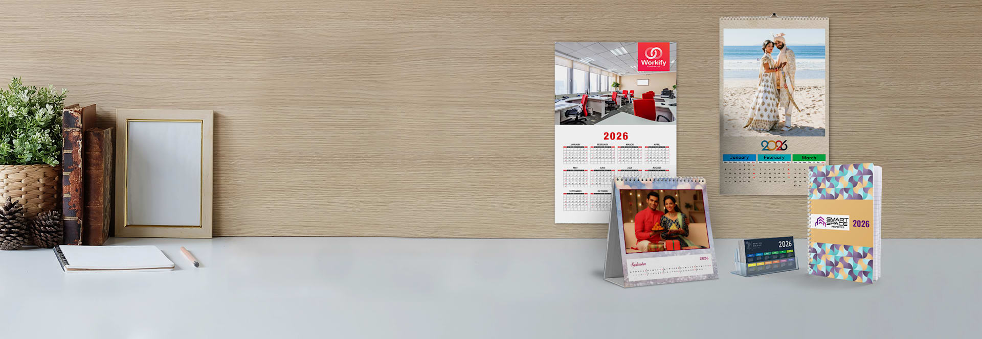 Brighten up your home or office space with personalised photo calendars. These photo calendars are perfect for adding and marking significant dates, events, public holidays, birthdays, anniversaries, and more. Custom photo calendars can be a great corporate giveaway to employees and an ideal welcome/onboarding gift for new clients and customers when printed with your business logo and name. Additionally, add memorable photos on these custom calendars, & it will delight your friends & family. So, start designing by choosing from our range of calendar types like - wall calendars, desk calendars, poster calendars, and pocket calendars - designs, themes, & patterns that match your needs and print your 2025 photo calendars today!