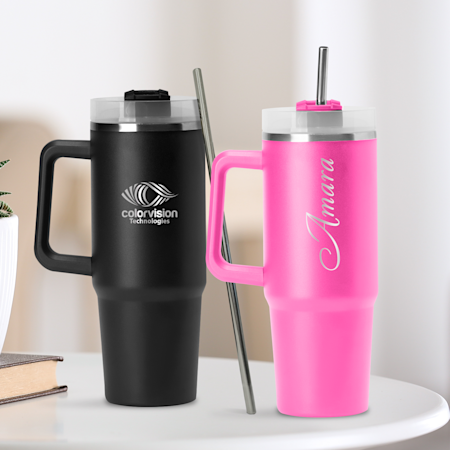 Using our interactive design studio, you can upload and preview your logo on our promotional drinkware. In addition, you can save your design preview and share it with a friend before placing the order. And if you need some assistance creating your custom engraved or printed drinkware, our customer care team is here to help you.