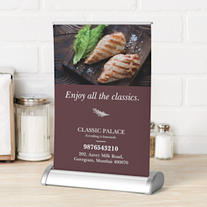 Want an easy and effective way to connect with customers? Table Standees are easy to set up and make the most of table space within your workspace or at an event. When your table standee design is aesthetic, it will support your goal of attracting attention at trade shows and conferences or enticing customers in restaurants and parlours. Paired with a branded tablecloth, matching flyers, posters, personalized pens & custom giveaways, you can easily create a consistent look that conveys your professional credibility.